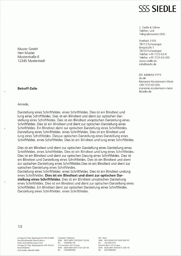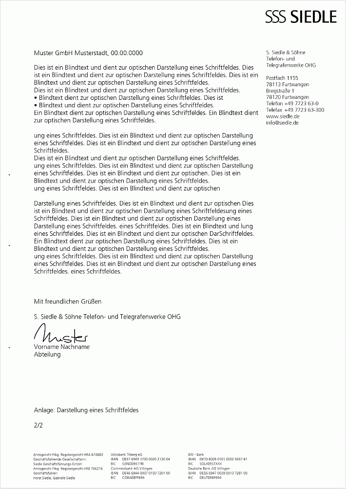 Als klassische Druckerzeugnisse präsentieren sich die Siedle-Briefbögen hochwertig, aber neutral und zurückhaltend. Sie werden für allgemeine Geschäftsbriefe sowie Schreiben der Geschäftsführung und Geschäftsleitung verwendet.