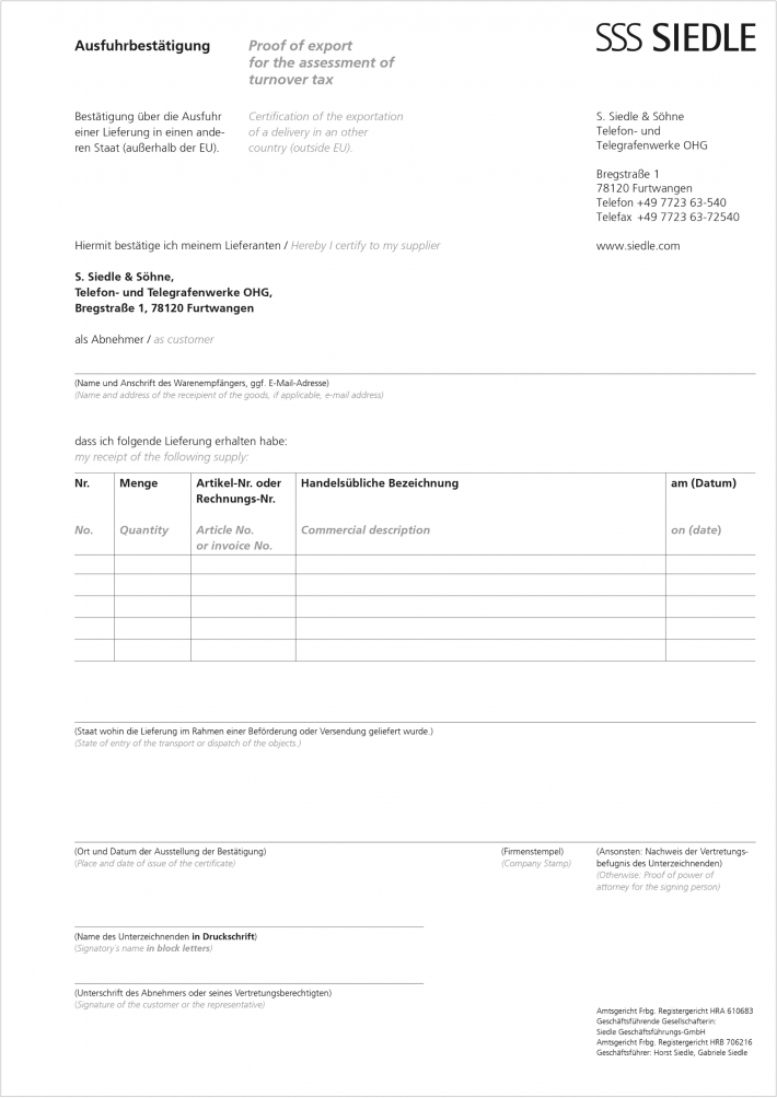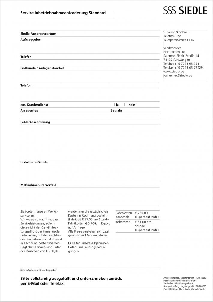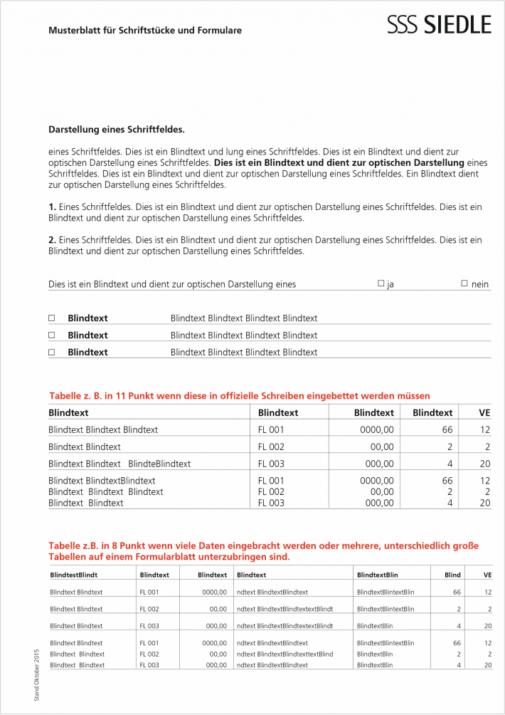 Auch Formulare und Schriftstücke, die nicht durch die Designabteilung gestaltet wurden, präsentieren sich einheitlich und in ansprechender Form. Entsprechende Richtlinien wurden im Rahmen des Siedle-Design-Konzepts erarbeitet.